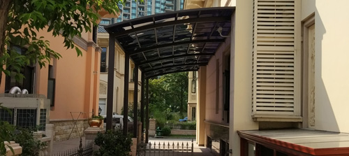 頂棚采用進口聚碳酸酯板,抗沖擊是玻璃的數(shù)百倍,有效防止高空墜物