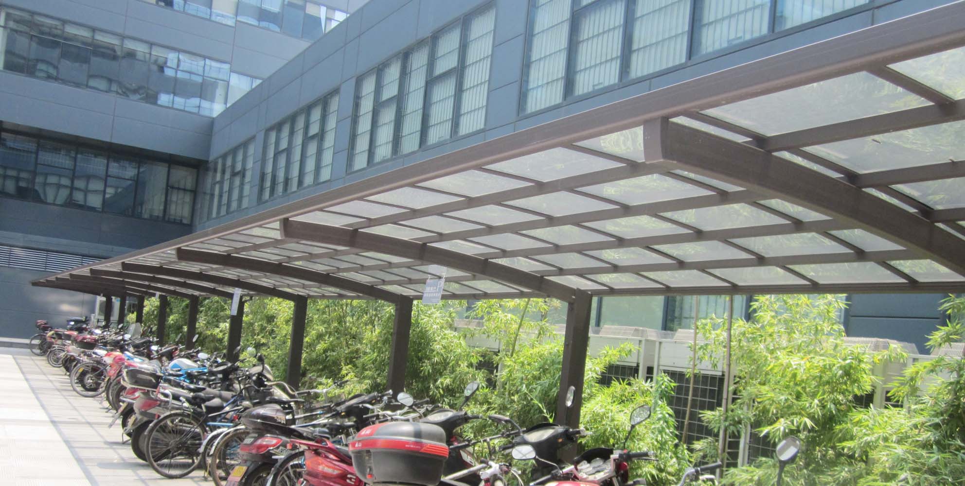 自行車棚作為城市公交設(shè)施綠色出行的一部分,是市民停放自行車的固定場所,自行車棚的建設(shè)單位打造城市低碳交通,為了還城市一個(gè)健康清新的環(huán)境,市民要加強(qiáng)意識,從而達(dá)到減少低碳元素類,特別是二氧化碳的排放量,從而減少對大氣的污染,減緩生態(tài)惡化,市政府應(yīng)設(shè)立自行車棚,為市民能實(shí)現(xiàn)綠色低碳環(huán)保的環(huán)境提供場所。鋁合金自行車棚是目前備受歡迎的車棚類型,在國外已逐漸應(yīng)用于體別墅小區(qū),企業(yè)工廠,政府單位等建筑中。