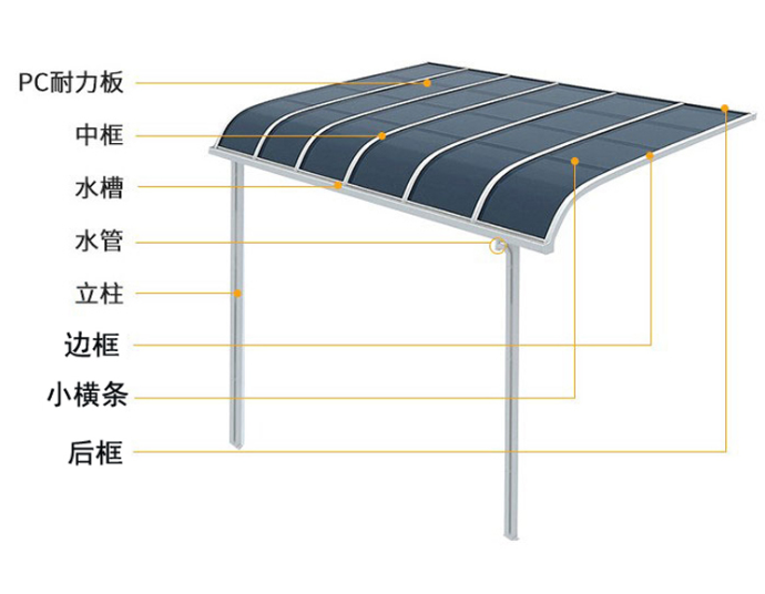頂棚采用進口聚碳酸酯板,抗沖擊是玻璃的數(shù)百倍,有效防止高空墜物